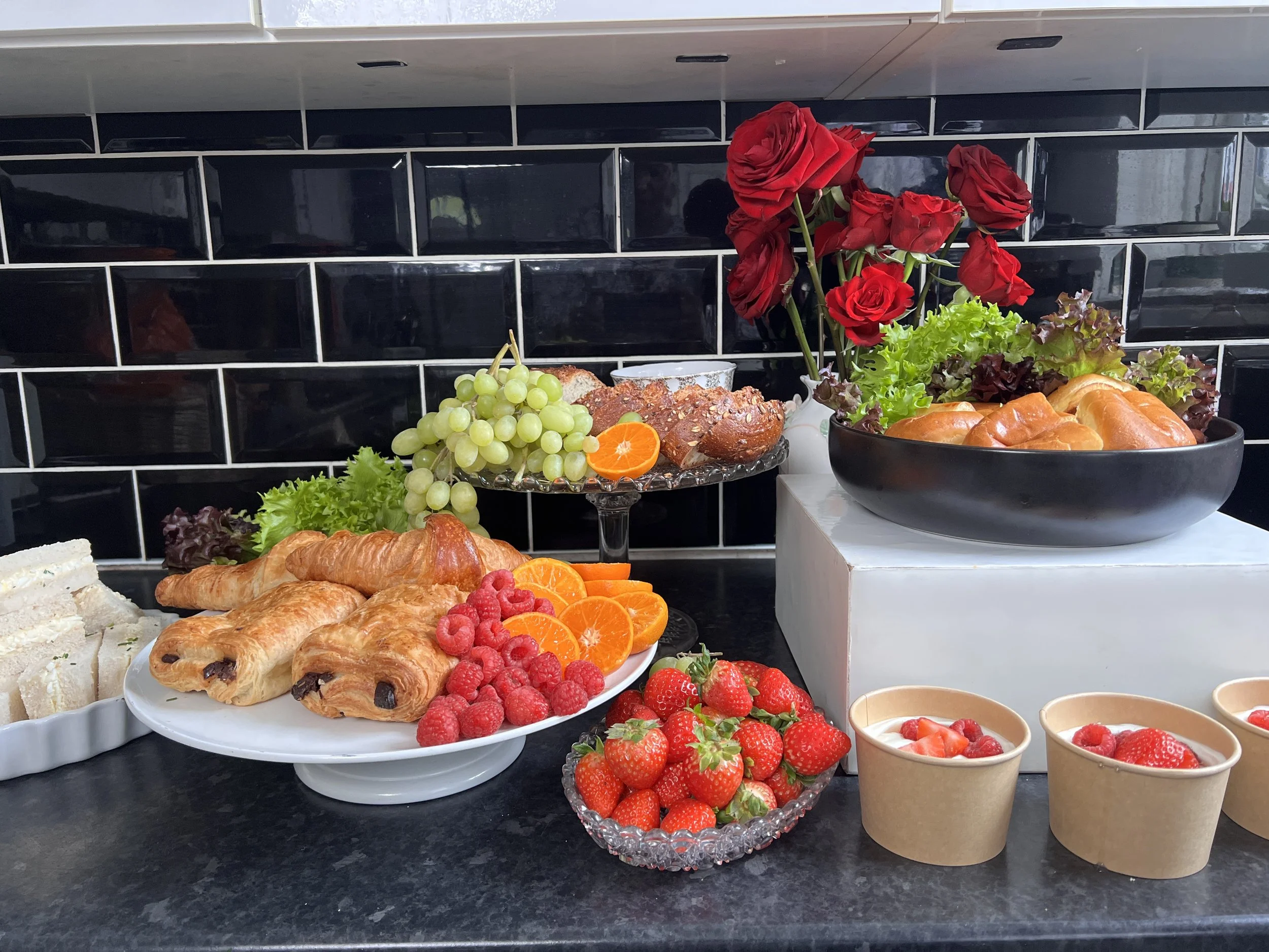 Whether you are looking to host a small gathering with a lush spread that is not only beautiful but nutritionally balanced, viennoiserie, fruits, probiotics, lean proteins, presented in a balanced yet beautiful way to add colour to your event.